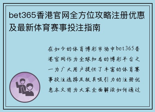 bet365香港官网全方位攻略注册优惠及最新体育赛事投注指南